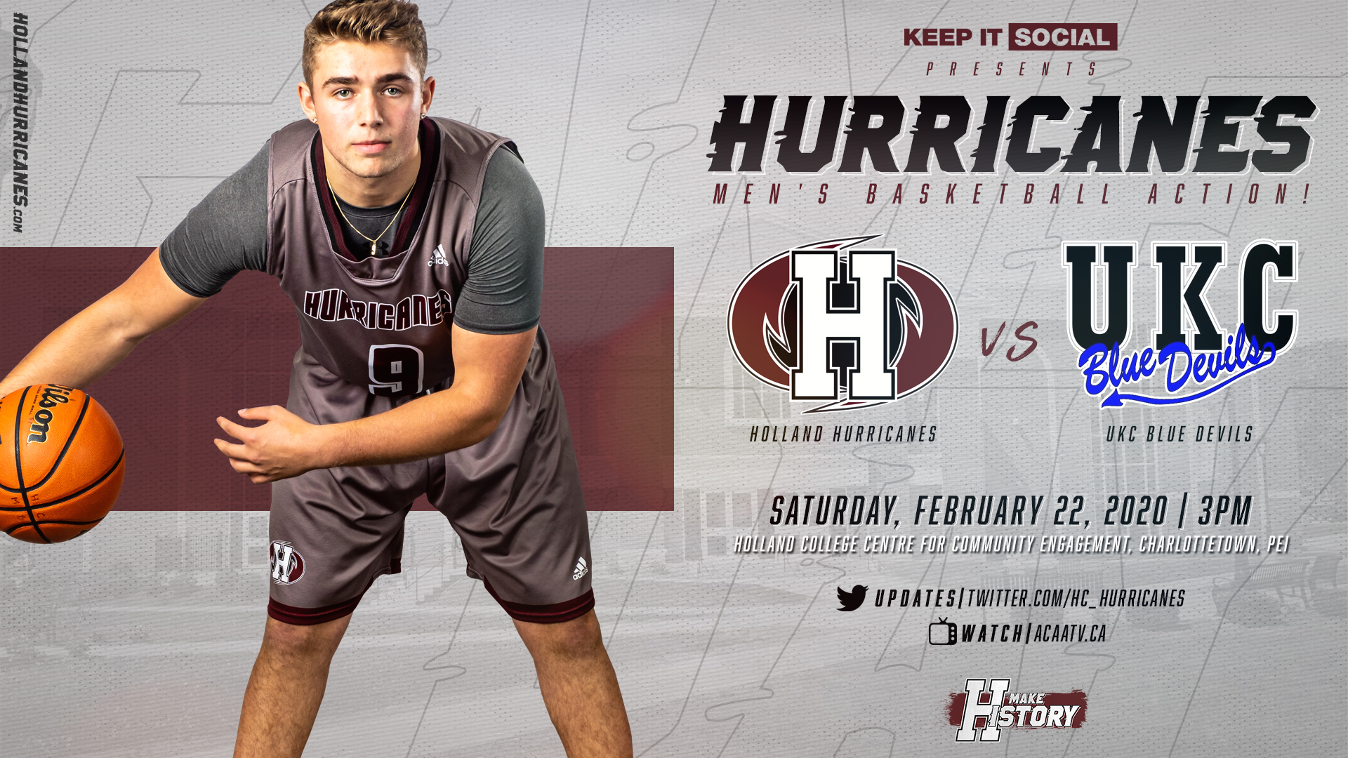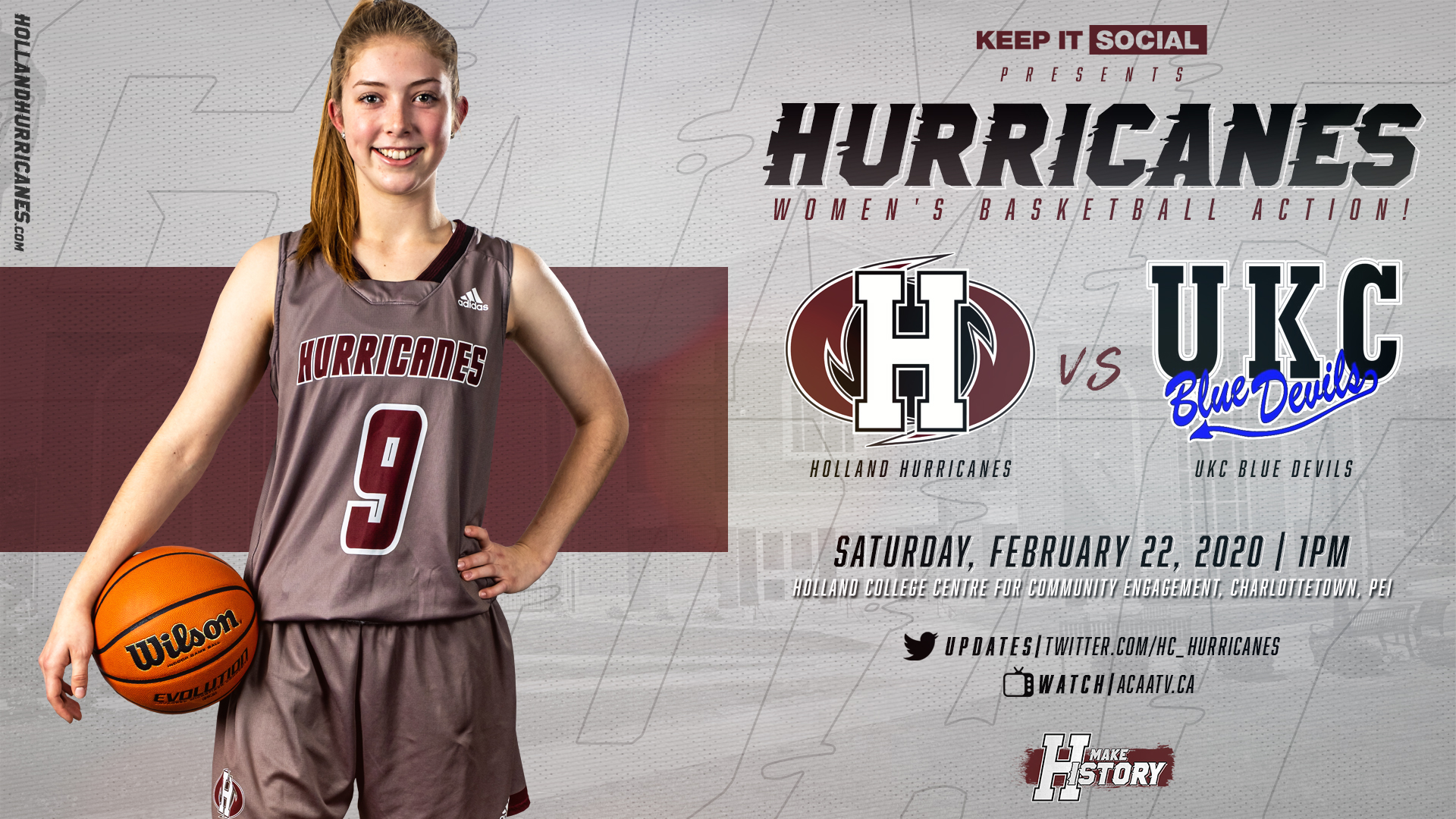 The Holland Hurricanes men’s and women’s basketball teams will play their final home games of the 2019-2020 Atlantic Collegiate Athletic Association (ACAA) season this Saturday when they host the University of King’s College (UKC) Blue Devils at 1 and 3pm at the Holland College Centre for Community Engagement (CCE) in Charlottetown. (w/m).