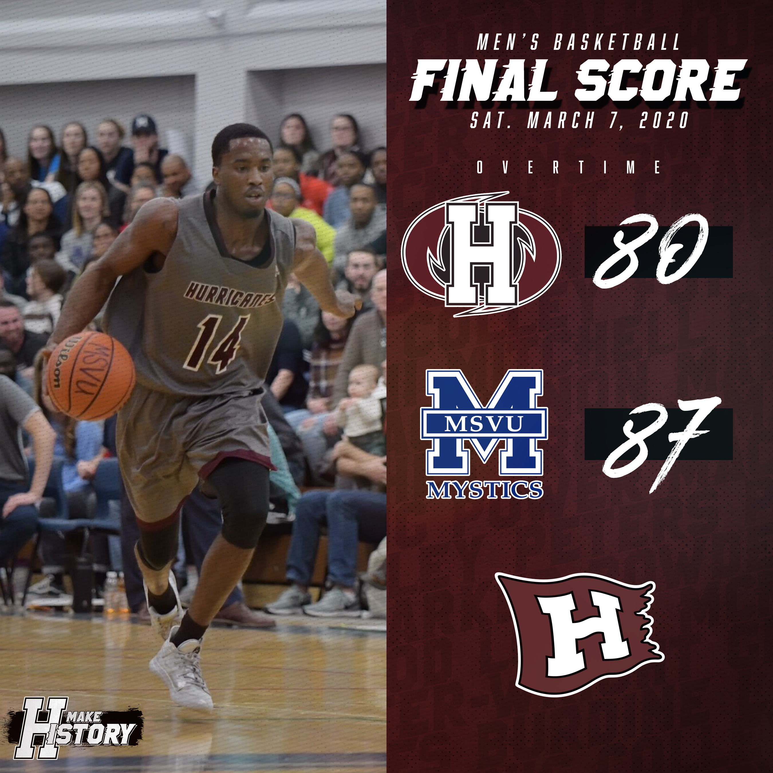 In the loss, Jordan Holness had 21 points, four rebounds, one assist, and two steals for the Hurricanes with Adrian Thompson coming off the bench to add 21 points and 15 rebounds.