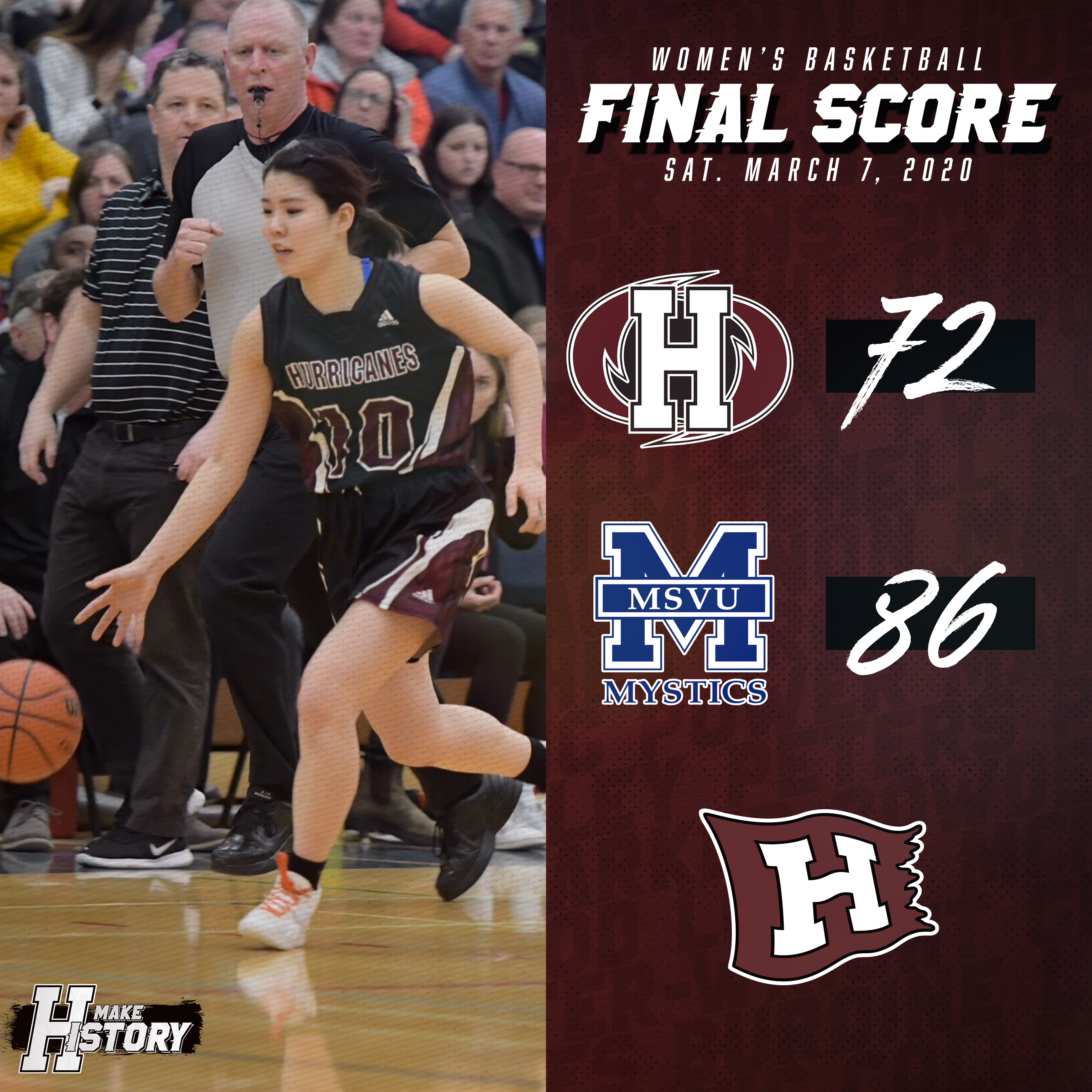 It wasn’t the Saturday the men’s and women’s basketball Hurricanes were looking for in Halifax, Nova Scotia at the 2020 Atlantic Collegiate Athletic Association (ACAA) Championships. Facing the hosts from the Mount Saint Vincent University (MSVU), the Hurricanes would fall in back-to-back semi-final games to the Mystics to end their seasons. The women would fall 86-72 before the men would drop an overtime thriller, 87-80.