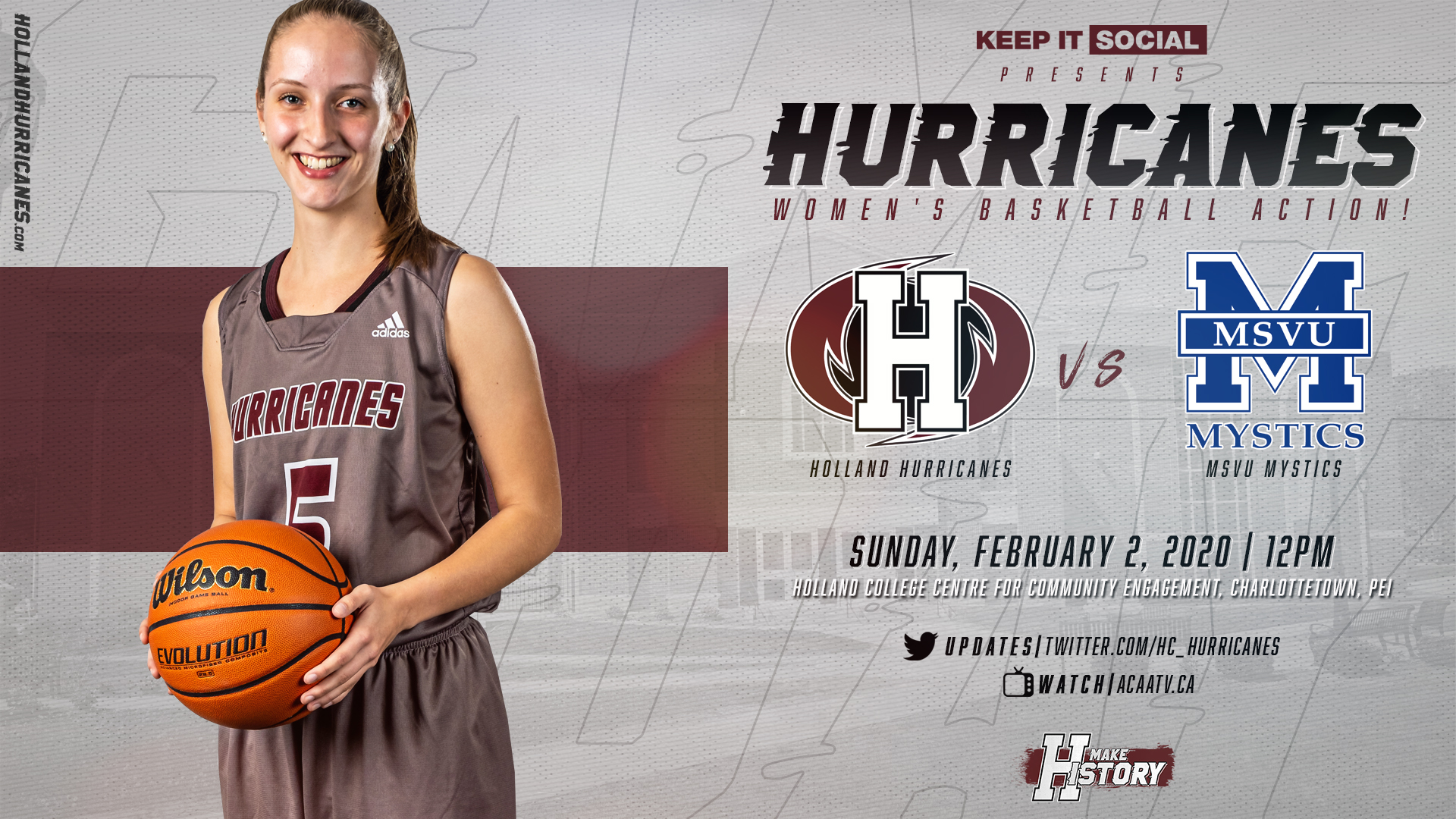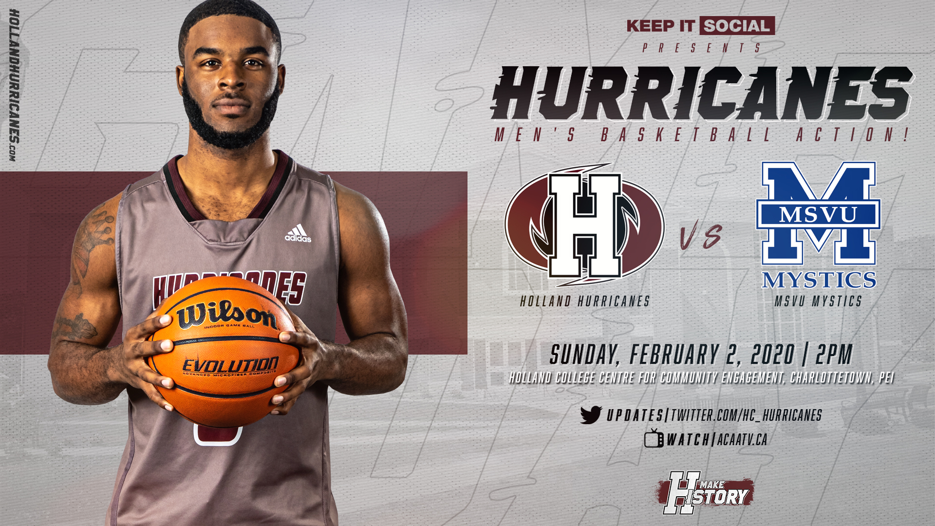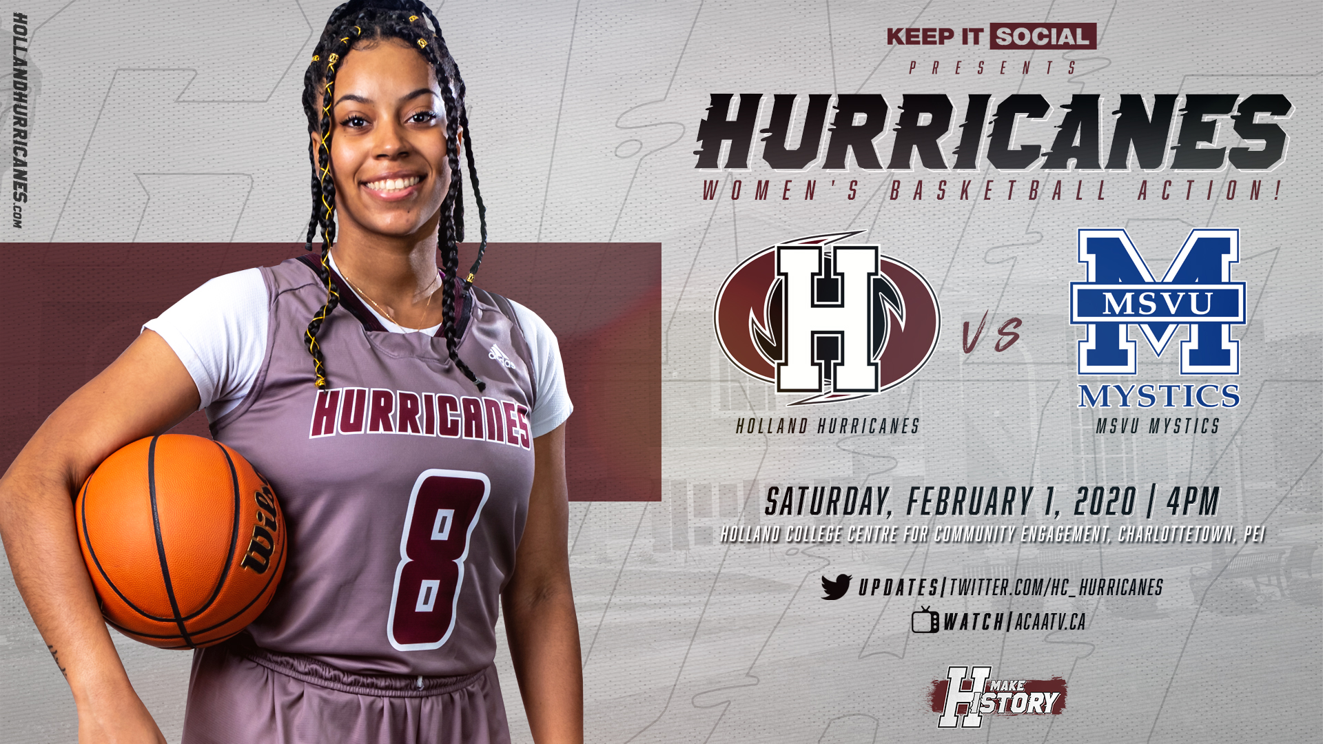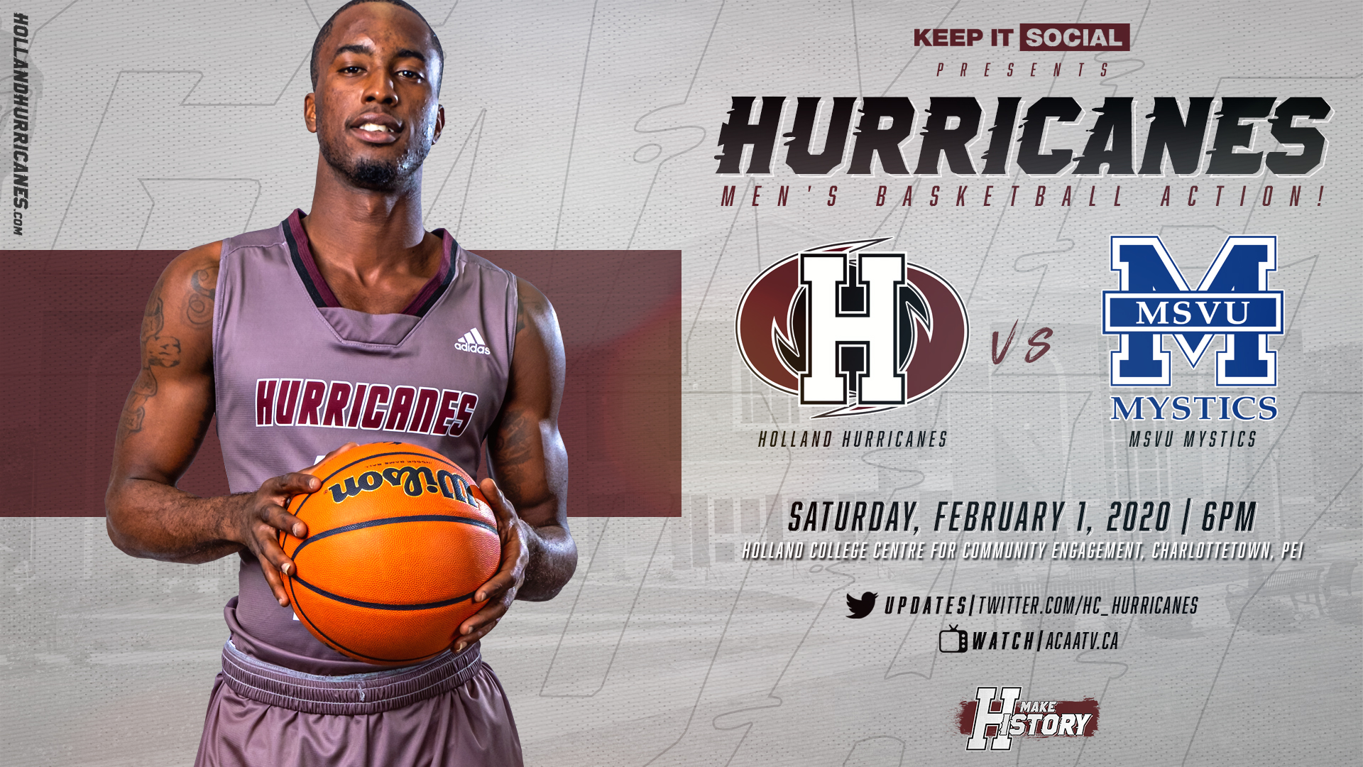 The Holland Hurricanes men’s and women’s basketball teams will host the Mount Saint Vincent University (MSVU) Mystics at the Holland College Centre for Community Engagement (CCE) in Charlottetown, PEI on Saturday and Sunday in Atlantic Collegiate Athletic Association (ACAA) regular season play.