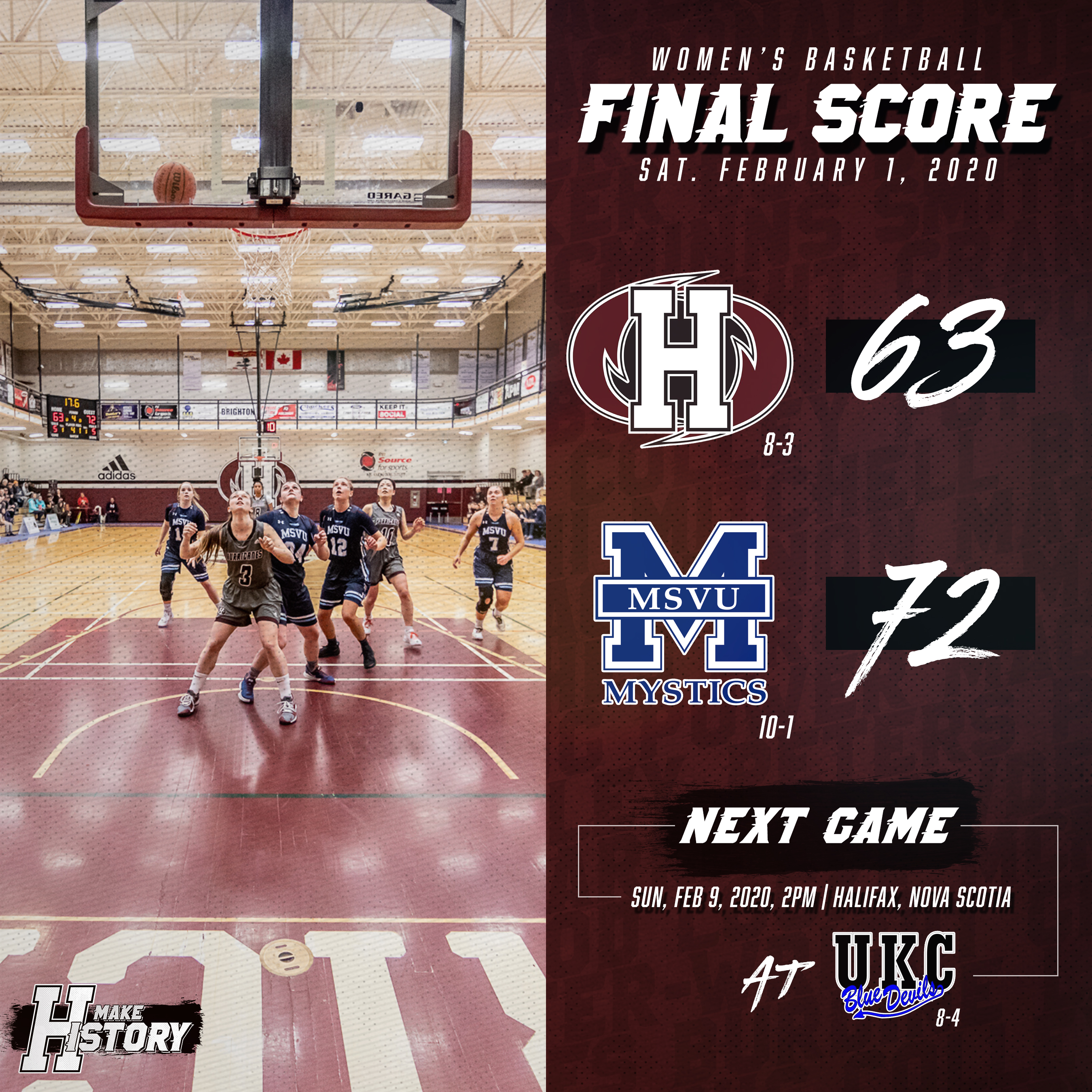 The Holland Hurricanes men’s and women’s basketball teams hosted the Mount Saint Vincent University (MSVU) Mystics this weekend at the Holland College Centre for Community Engagement (CCE) in Atlantic Collegiate Athletic Association (ACAA) regular season play. The Mystics claimed victory in both games on Saturday with the ‘Canes claiming victories in both games on Sunday.