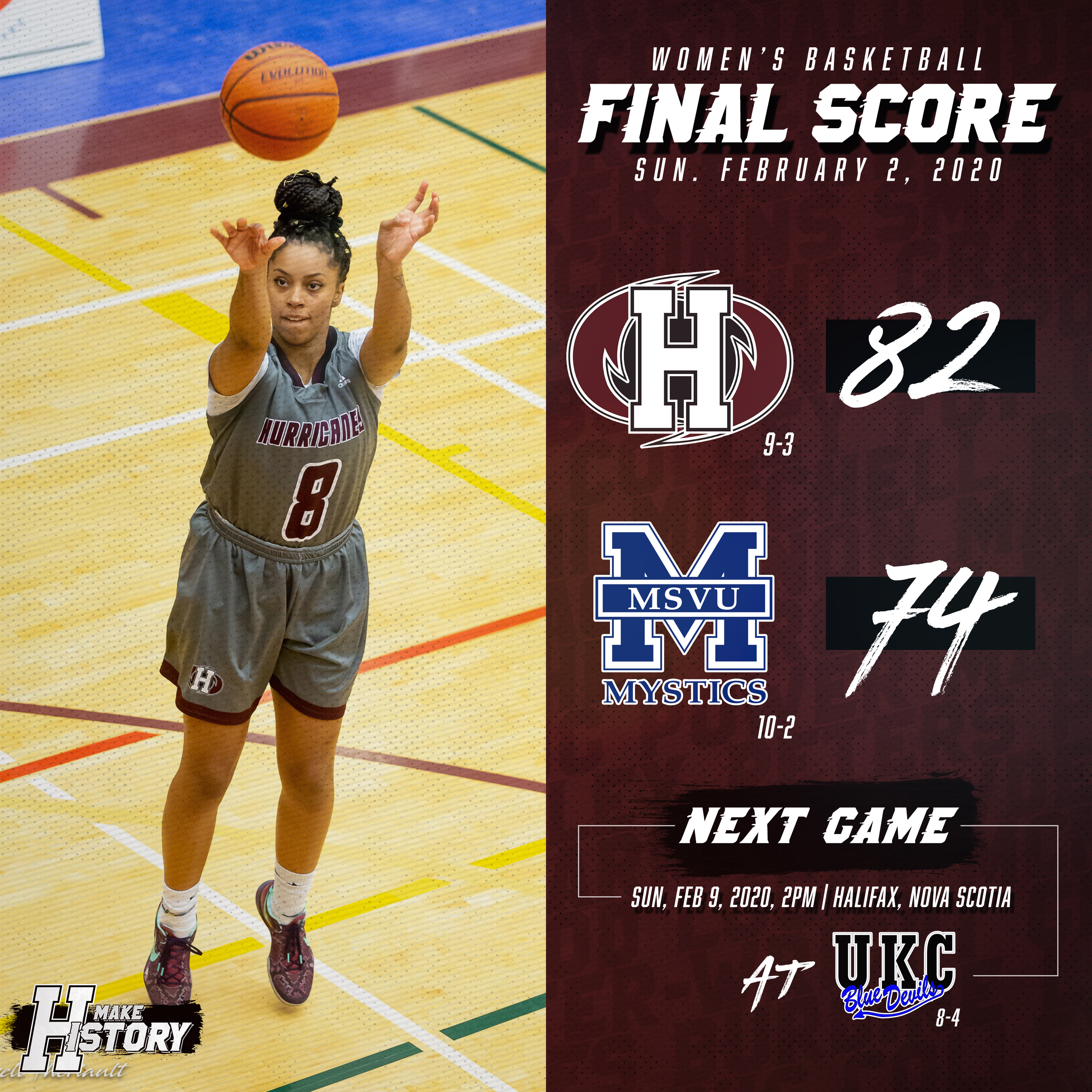 The men’s Hurricanes now sit at 9-3 on the year and are tied with the Mount Allison University Mounties and STU Tommies for top spot in the conference standings. The Mystics are now 7-5 on the year and sit in fourth place.