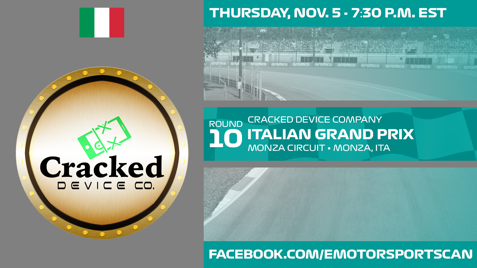 The Canadian eMotorsports Network Formula 1 Series continues its high-speed tear through the second half of the season with a stop at the Autodromo Nazionale di Monza for the Cracked Device Company Italian Grand Prix, the 10th race of the season.