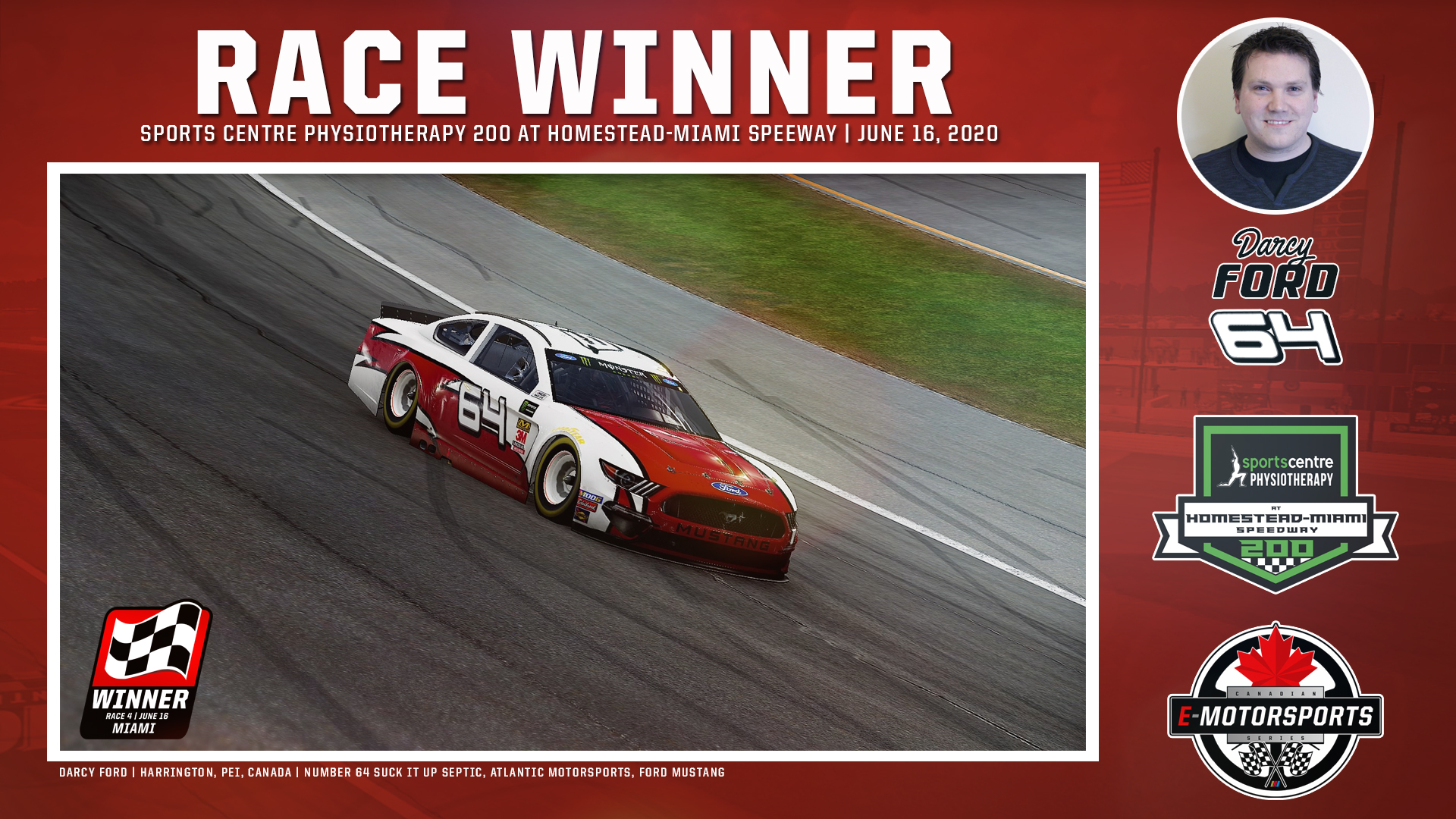 The Canadian eMotorsports Series travelled to the Homestead-Miami Speedway on Tuesday night for the Sports Centre Physiotherapy 200; the fourth race of the 2020 regular season.