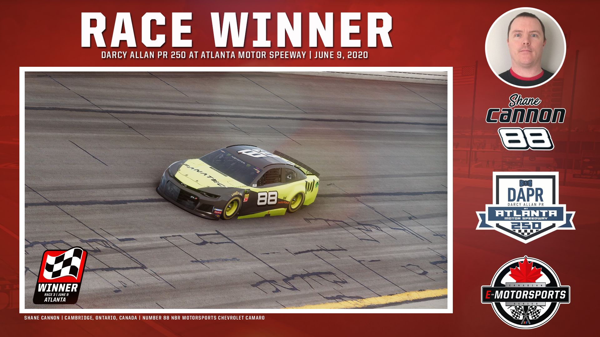 The Canadian eMotorsports Series travelled to the virtual-Atlanta Motor Speedway on Tuesday night for their third stop in the 2020 season, the Darcy Allan PR 250.