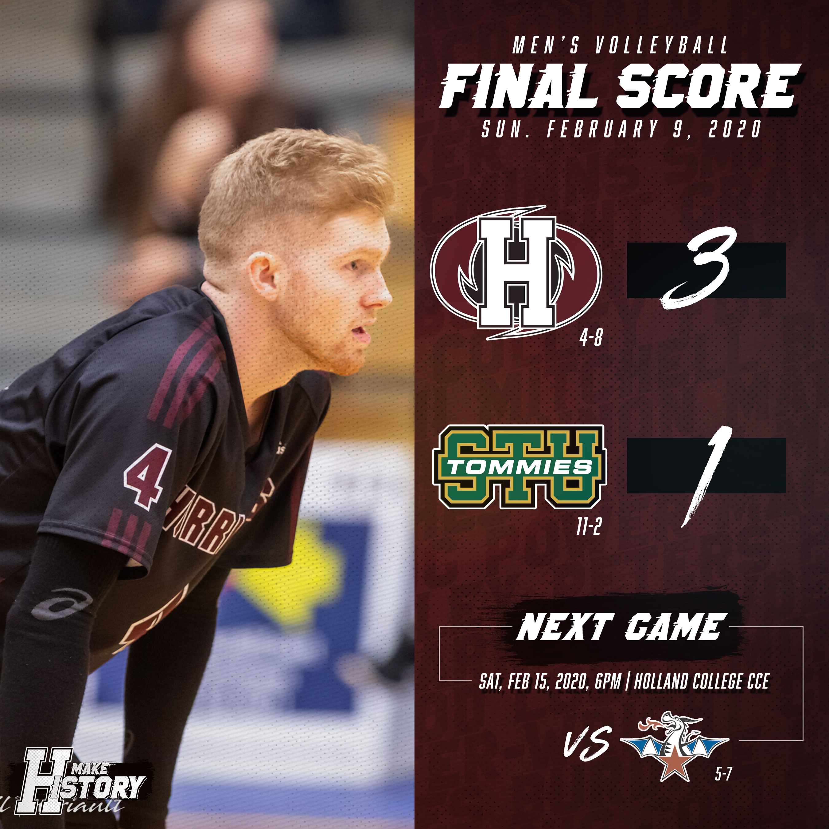 The Holland Hurricanes men’s and women’s volleyball teams were in action on the road this weekend in Atlantic Collegiate Athletic Association (ACAA) regular season play. The ‘Canes women defeated the Dalhousie Agricultural Campus (Dal AC) Rams in straight sets on Saturday in Truro, Nova Scotia while the men were in Fredericton, New Brunswick taking on the St. Thomas University (STU) Tommies. In Saturday’s match the Tommies walked away victorious while the Hurricanes claimed the win on Sunday; both matches ended in four sets.