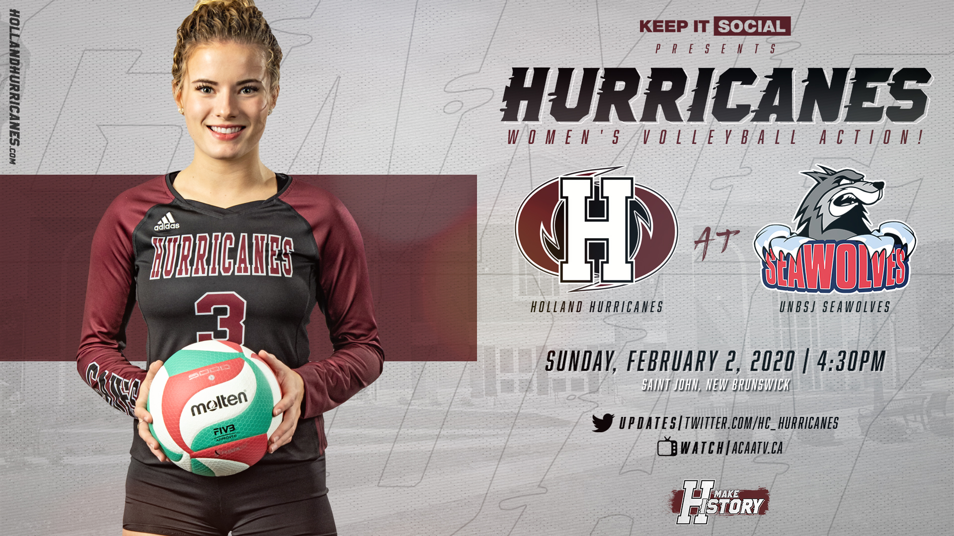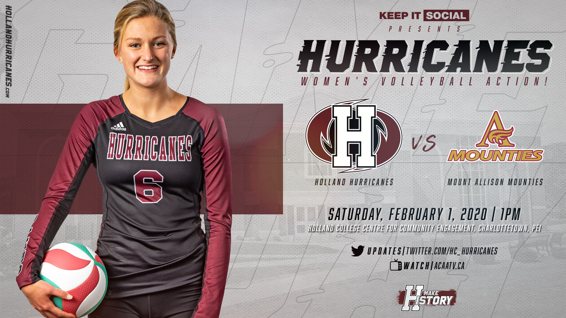 The Holland Hurricanes women’s volleyball team will host the Mount Allison University Mounties at the Holland College Centre for Community Engagement (CCE) in Charlottetown, PEI on Saturday at 1pm before hitting the road for New Brunswick to take on the University of New Brunswick-Saint John (UNBSJ) Seawolves on Sunday at 4:30pm.