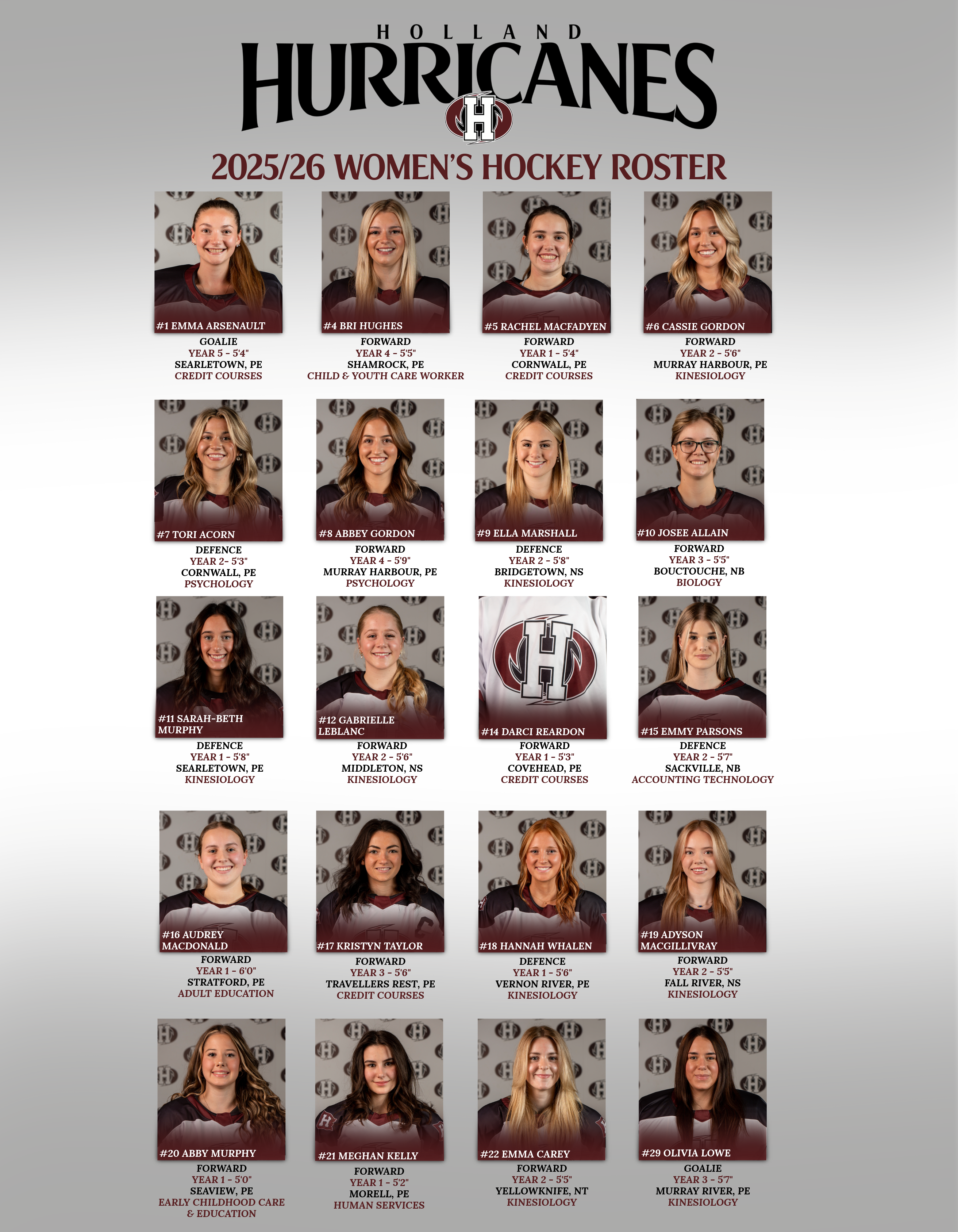 Welcome to the page of the Holland Hurricanes women's hockey team, the 2016, 2023, 2024 and 2025 Atlantic Champions.
