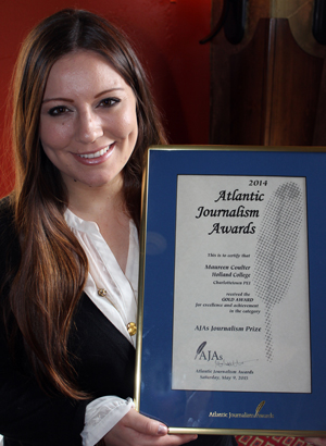 An outstanding student in the Journalism program at Holland College accepted an Atlantic Journalism Award during a reception in Charlottetown recently.
