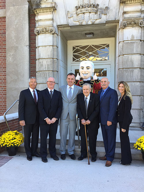 In this picture (L-R): Foundation board member Barry Sheen; board chair Shaun MacIsaac; Steven Joyce, Joyce Family Foundation; Ron Joyce, Joyce Family Foundation; Dr. Brian McMillan, Holland College President; Jo-Ann Campbell-Boutilier, Executive Director, Holland College Foundation.