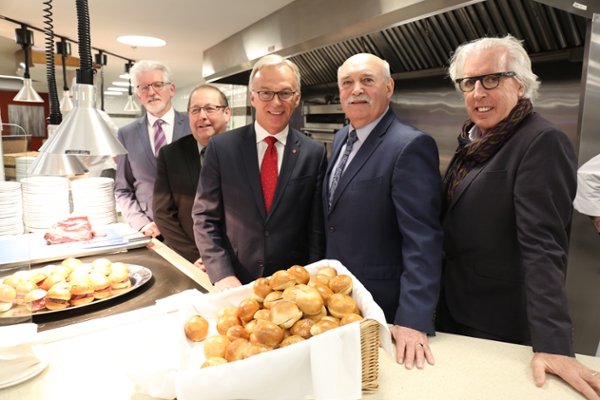Staff, students, government representatives and donors celebrated the completion of the $7.5 million revitalization of The Culinary Institute of Canada made possible through the generosity of private donors, the Government of Canada, and the Province of Prince Edward Island during an event that featured food samplings, facility tours, and the unveiling of the Nourish campaign donor wall.