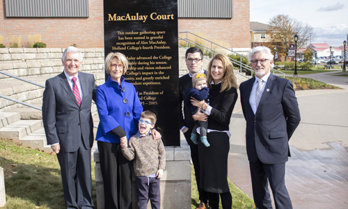 Mr. MacAulay was president of the college from 1995 to 2005, taking over from Chris Bryant. The naming of MacAulay Court celebrates his contributions to the college and the community, said the college’s current president, Dr. Alexander (Sandy) MacDonald.